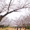 芝生広場でくつろぎながら望む桜 小学校の隣で子どもにも人気のスポット