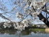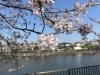 七分から八分咲きくらいですが、風で飛んだ花びらが池に落ちてます。