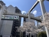 満開の桜とモノレール。