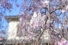 八角形の塔のある西洋風建物と純日本風の枝垂桜。このコラボが楽しめるのもこの時期ならでは。